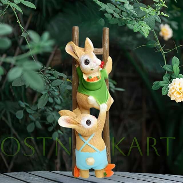 - Charming Design: Adorable 11.5-inch bunny statues climbing a ladder, adding a whimsical touch to your garden.